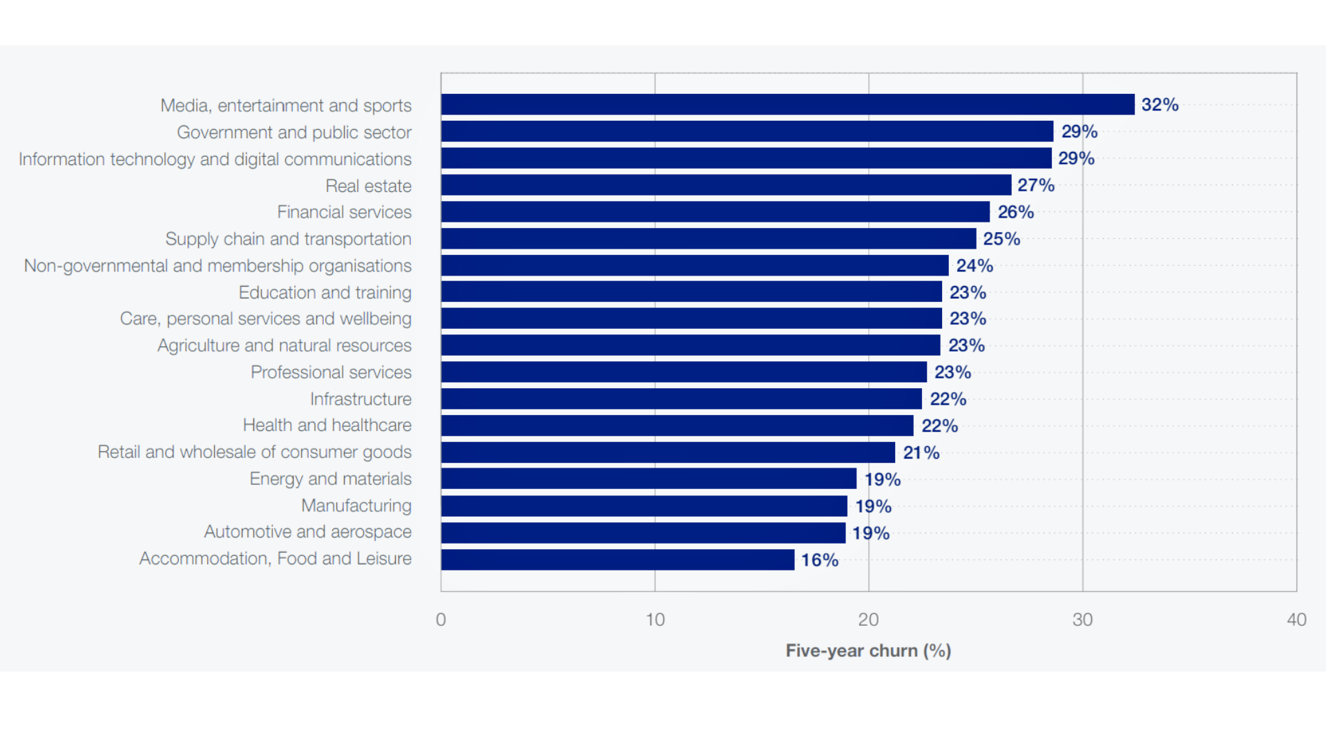 Labour-market churn refers to the total expected job movement - including both new roles being created and existing roles destroyed - as a proportion of current employment. This excludes situations where a new employee replaces someone in the same role.